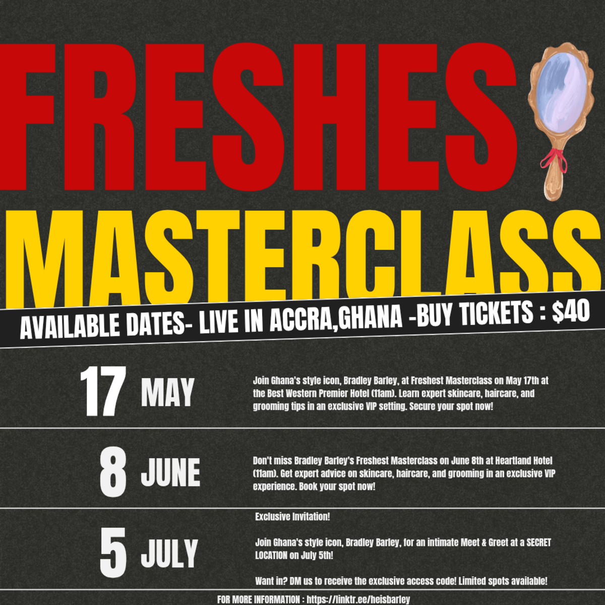 For the past 10 years, Bradley has dominated the Ghanaian entertainment industry with his unique sense of style and grooming. Now, you can learn from him directly and gain valuable insights into: