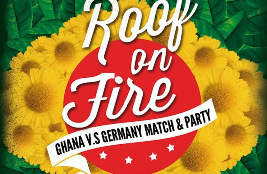 The ultimate combination of 2 fanstastic things, Football and parties! Roof on Fire is bringing you the Ghana Vs Germany match on Saturday the 21st of June 2014. The match will start at 7pm and will be shown on a large projector screen, beers, burgers/hotdogs and alcoholic smoothies will be availabe.