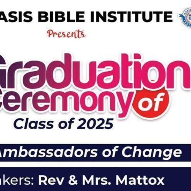 Join us for a momentous occasion! The Oasis Bible Institute (OBI) is proud to announce its inaugural graduation ceremony taking place on March 29, 2025. This historic event will celebrate the first cohort of graduates who have successfully completed their theological and ministerial training.