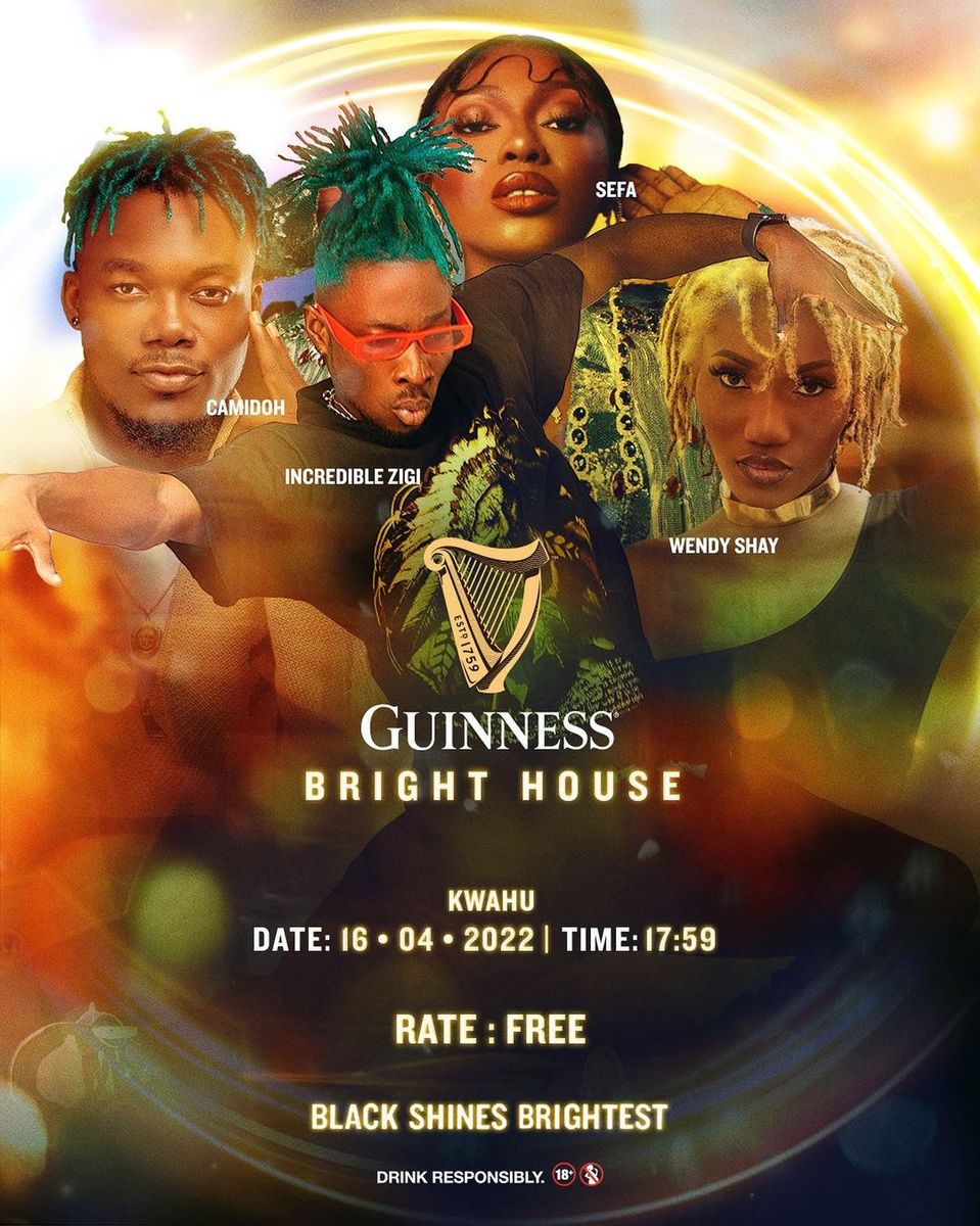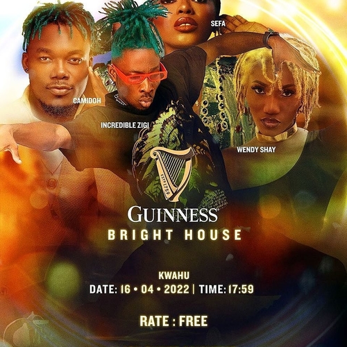 Are you ready? Jammm and shine bright, as we bring the Guinness Bright House experience to Kwahu on 16th April at 17:59. Join us for amazing performances from Camidoh and Incredible Zigi.