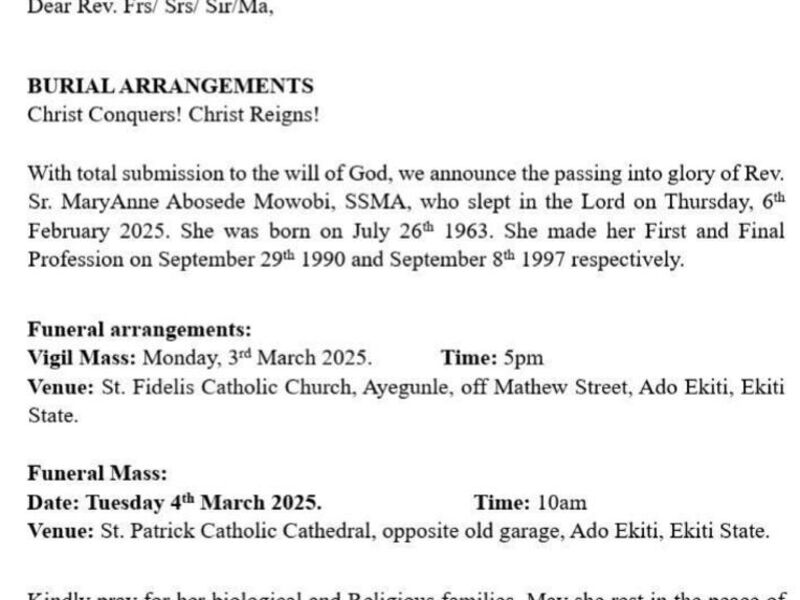 Burial of Sr. MaryAnne Abosede Mowobi SSMA