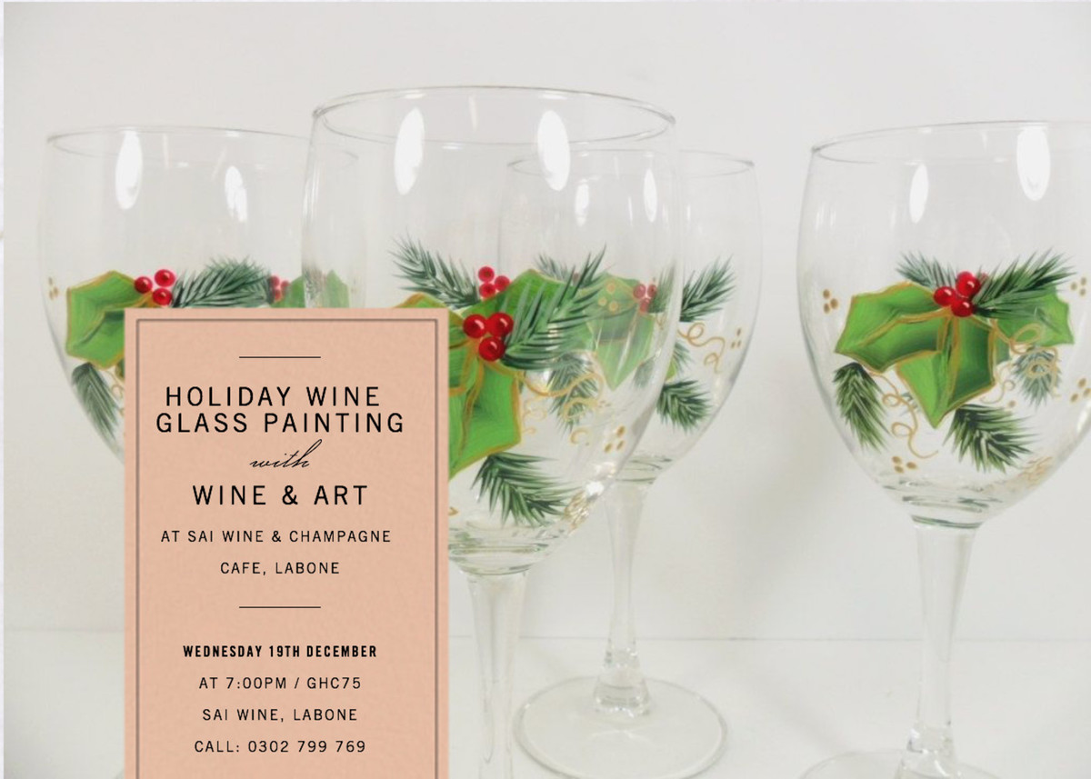 Gift somebody something different this festive season or make space on your shelf :-)Join for a special wine and art session where we shall be painting designs on a wine glass - you can have your own design in mind or just what the artist orders.