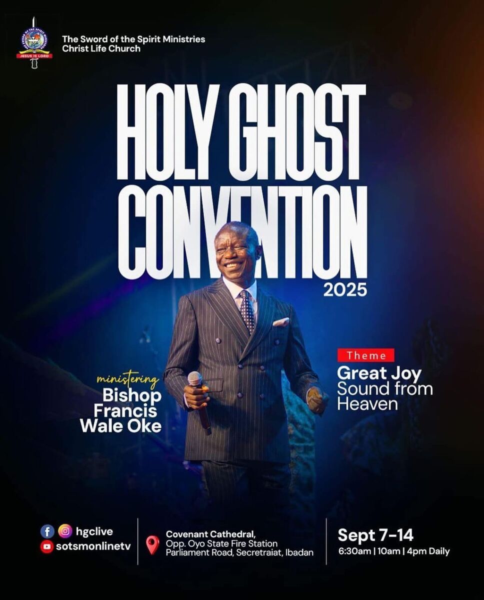 Join us for the highly anticipated Holy Ghost Convention 2025 at Covenant Chapel, Christ Life Church in Ibadan! Experience a powerful spiritual encounter designed to transform your relationship with God. This event promises an inspiring lineup of worship, prayer, and teachings that will uplift and energize your faith. πβ¨