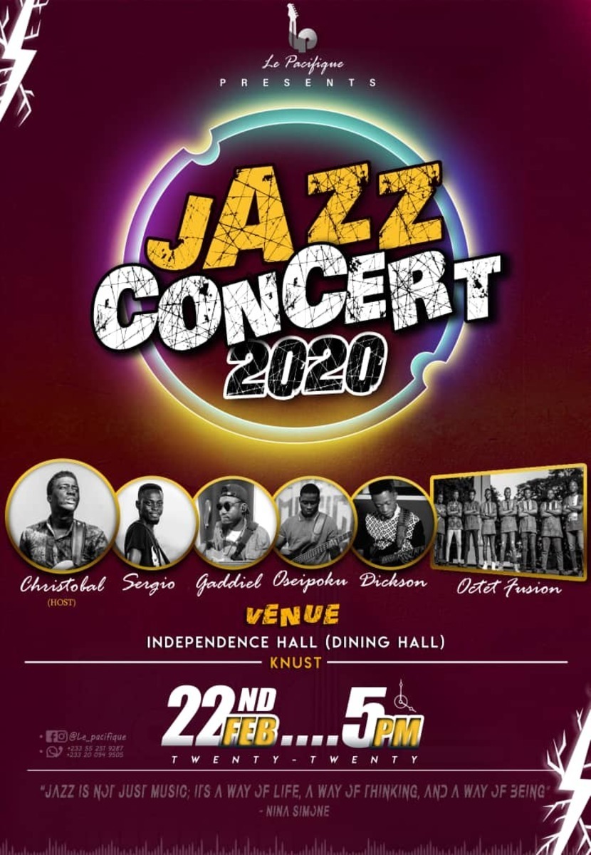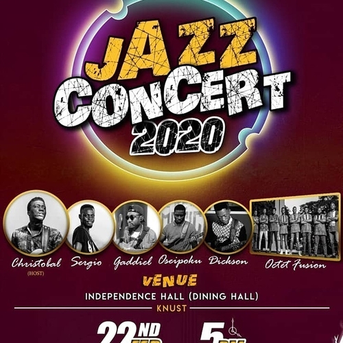 KNUST JAZZ CONCERT 2020 comes off at the independence hall dining hall on saturday, 22nd of february. come and enjoy good music from these talented musicians.
