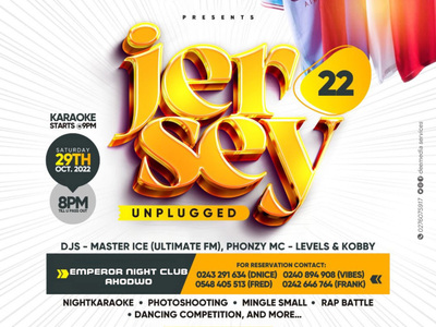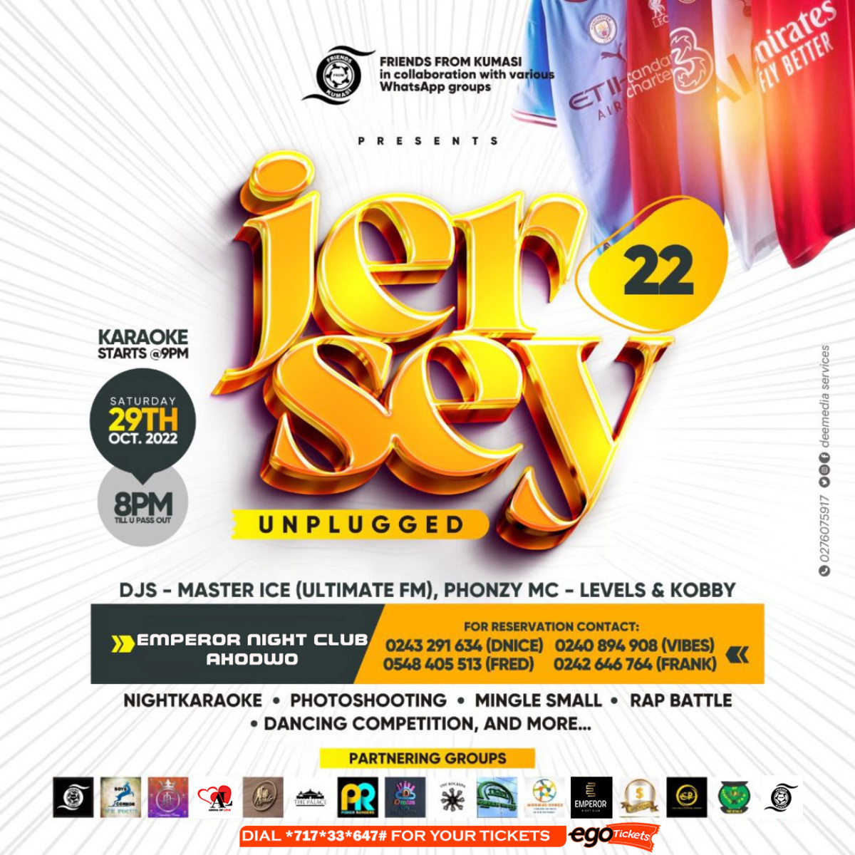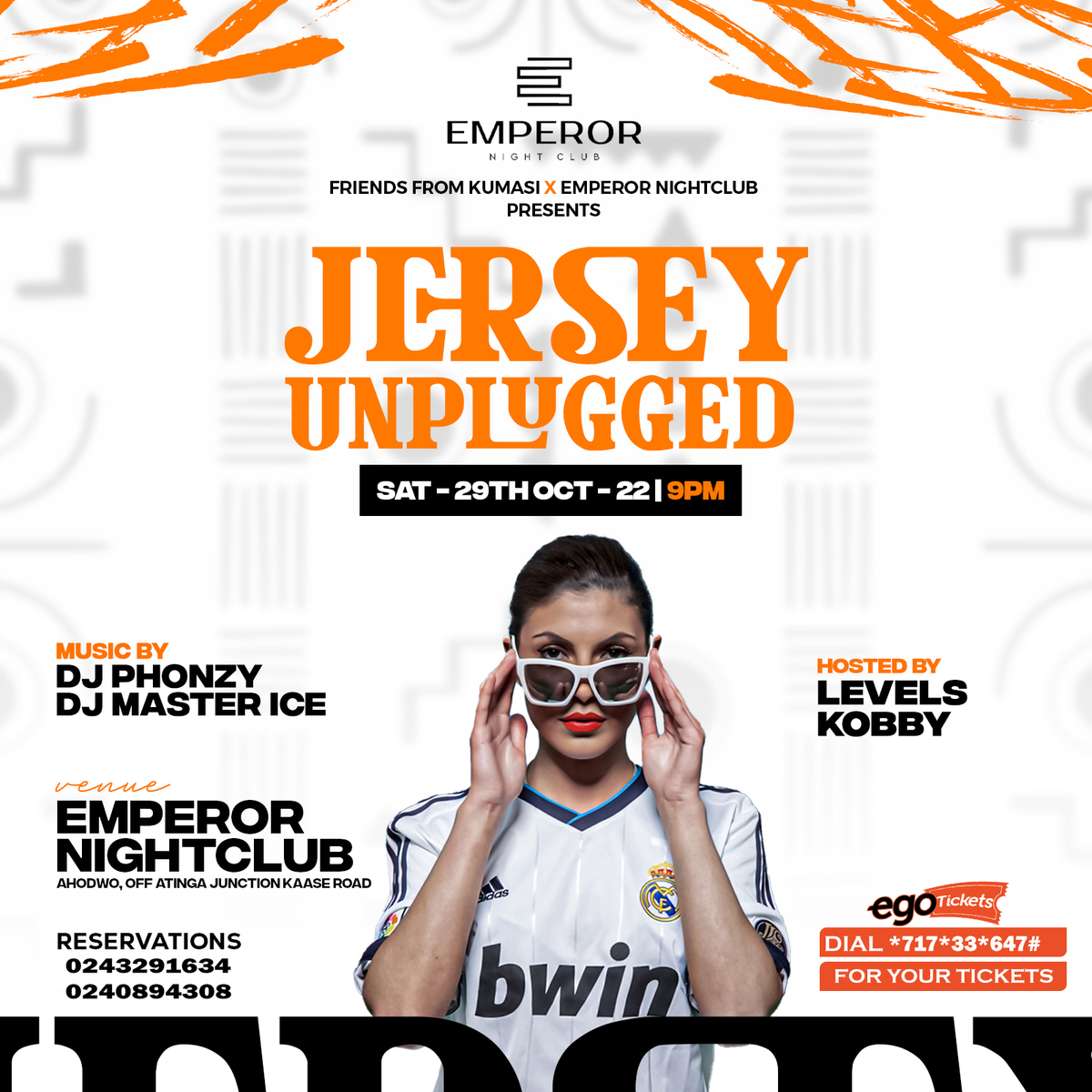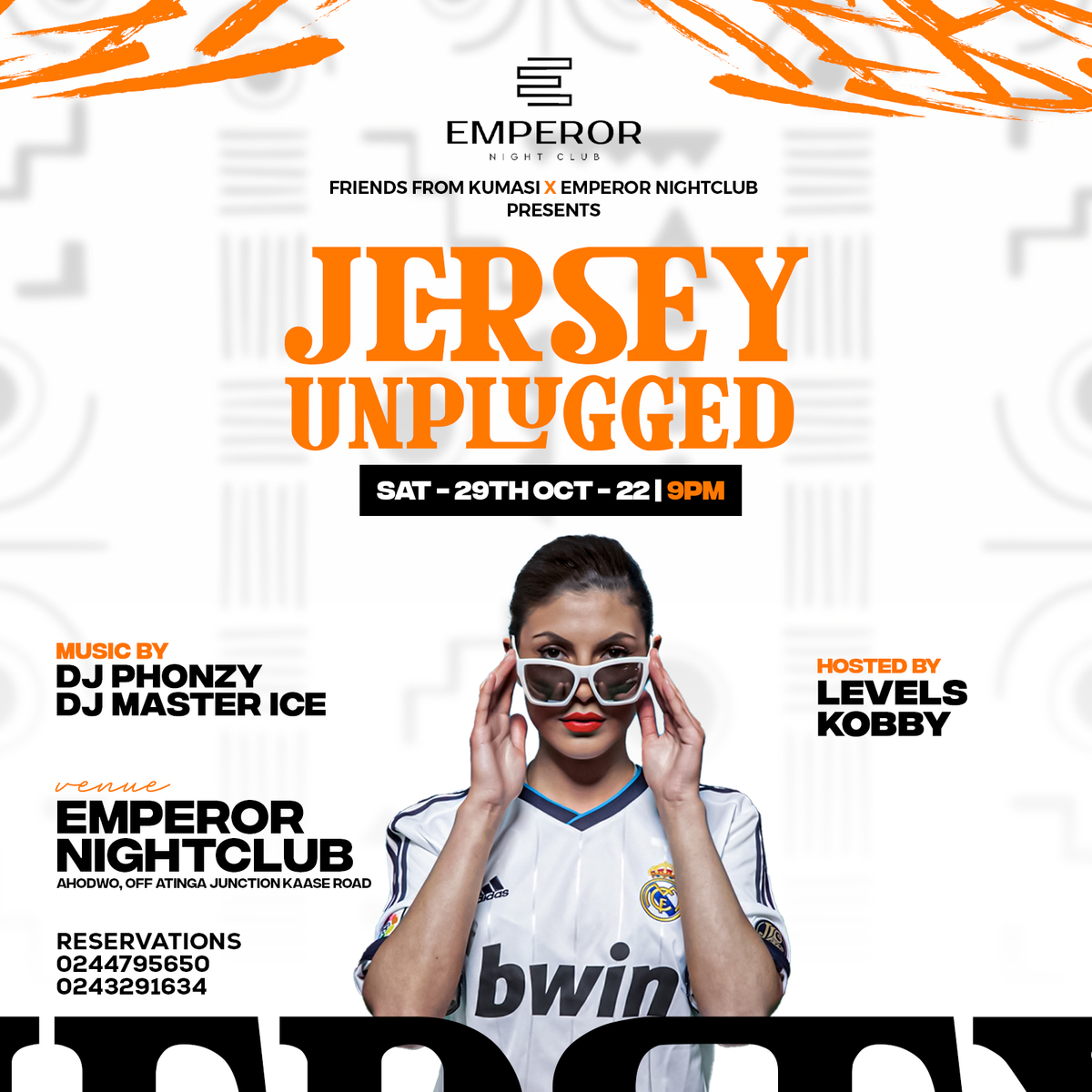 Friends From Kumasi “FFK” in collaboration with Emperor Nite Club comes your way with another intriguing event (Jersey Unplugged “22)…..rock your favorite team’s jersey come party with the whole of Kumasi,it’s the official sports party of the year,Barca,Chelsea,Madrid,Man U,Lipool,Juve,Milan,Bayern,Arsenal and all NBA lovers across the world….it’s party time…uniting 16 sister WhatsApp groups to lift the spirit of togetherness