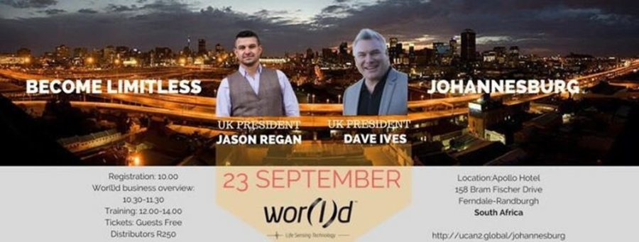 WOR(l)D Business Overview & Training 10:00am - 2:00pm (Local Time Zone) SPECIAL GUESTS: Presidents: Dave Ives & Jason Regan Ticket: £15 / 250 RAND Guests: FREE For more information & tickets visit: http://ucan2.global/johannesburg