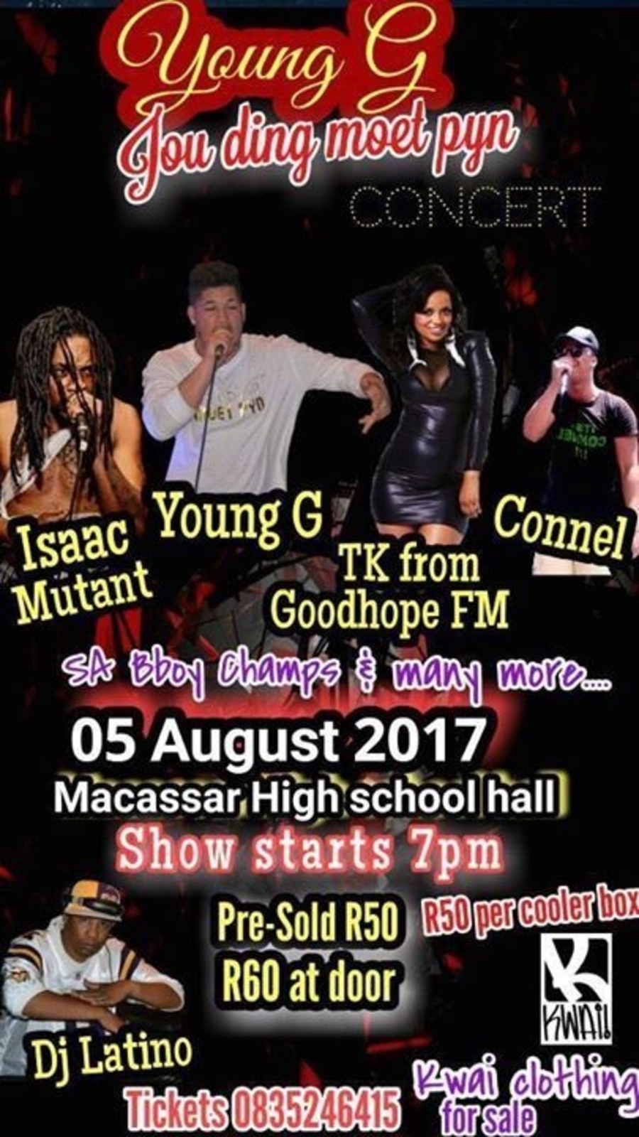 Its on !!! 05 August 2017 "Jou ding moet pyn " Live Concert in Macassar . This is a one night only promising to be Lit �� Amazing Line up :