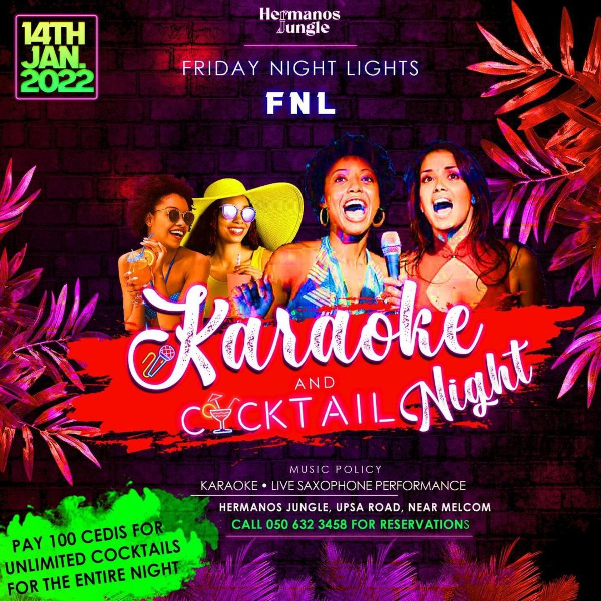 Come demonstrate your singing and or rapping skills at the Jungle this Friday, the 14th of January 2022 and get UNLIMITED cocktails🍸 for the ENTIRE night with special prizes to be won at the end of the night!