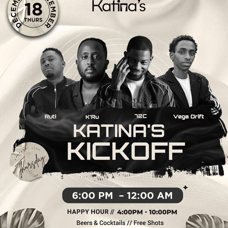 Get ready for an unforgettable evening at Katina's Kickoff – the final Thursday Kickoff of the year! Dive into the ultimate after-work vibe with Happy Hour specials and incredible beats spun by talented DJs Ruti, Kru, 72C, and Jim MGS. It's the perfect way to unwind and groove into the night.