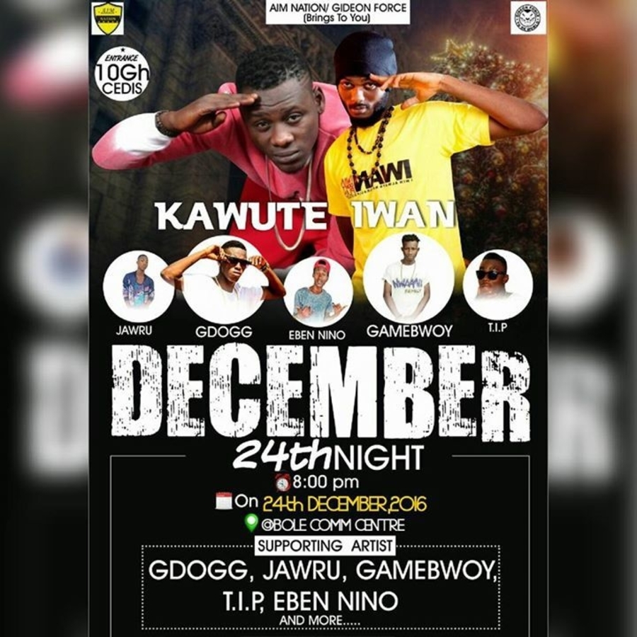 Is Bringing To The People Of BOLE [Northen Region] An Xmas Concert On 24th DECEMBER NIGHT 2016 At The BOLE COMMUNITY CENCERT WHICH FEATURES.. MySelf [The Aim Nation Boss] An Award Wining Artist IWAN-Di Lyrical Gunshot [Ghana Music Awards Reggae And Dancehall Artist Of The Year 2012, Gdogg [Aim Nation Prince] GameBoi, Jawru, T.I, Eben Nino, Wezard, BwoyWan, and many more upcoming talents will be passing through ....
