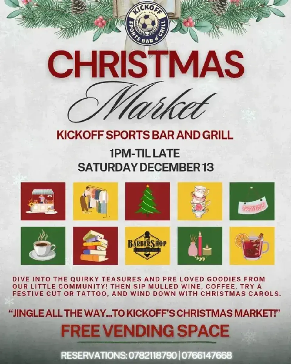 Get into the festive spirit at the Kickoff Sports Bar Christmas Market! This vibrant event offers a unique opportunity to network and celebrate the holiday season with a dynamic crowd. Featuring Kick Off Bar, immerse yourself in a joyful atmosphere filled with Christmas cheer. Whether you're looking to connect with others or simply enjoy the seasonal vibes, this market promises a memorable experience for all.