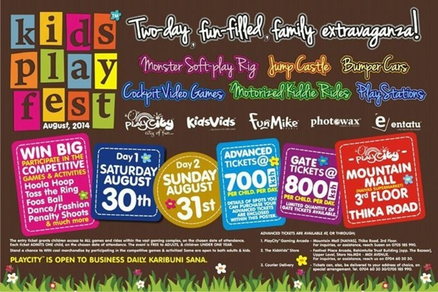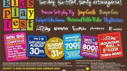 Enjoy the best of this edition of the Kids Play Fest, a 2-day, fun-filled, family play extravaganza that goes down at Play City conveniently located at Mountain Mall - Thika Road, on the 30th & 31st of August, 2014.