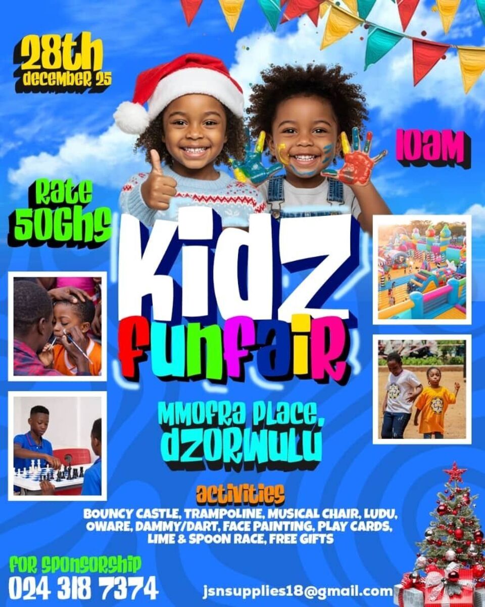 Kidz FunFair coming up on 28th December inside Mmofra place - Dzorwulu . A whole lot of activities going to happen.