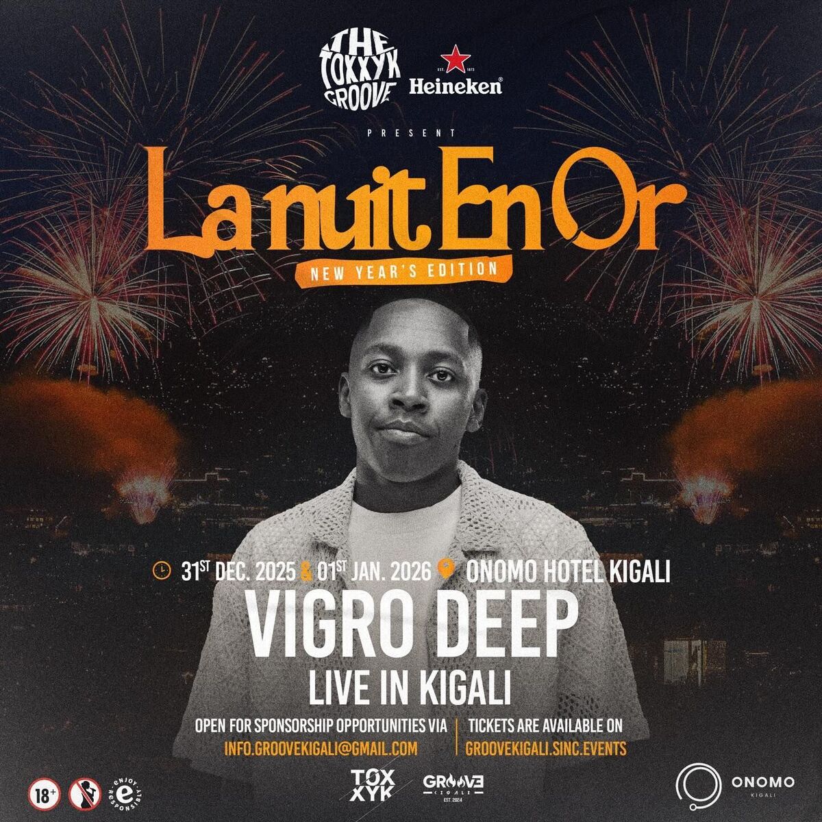 Get ready for the party of the year at La Nuit en Or! Experience an unforgettable night with the one and only prince of Amapiano, Vigro Deep, performing live. Feel the rhythm, embrace the energy, and dance into the New Year with a celebration that promises more surprises in the lineup. Powered by Heineken, this event is set to be an electrifying cultural moment in the heart of Kigali.