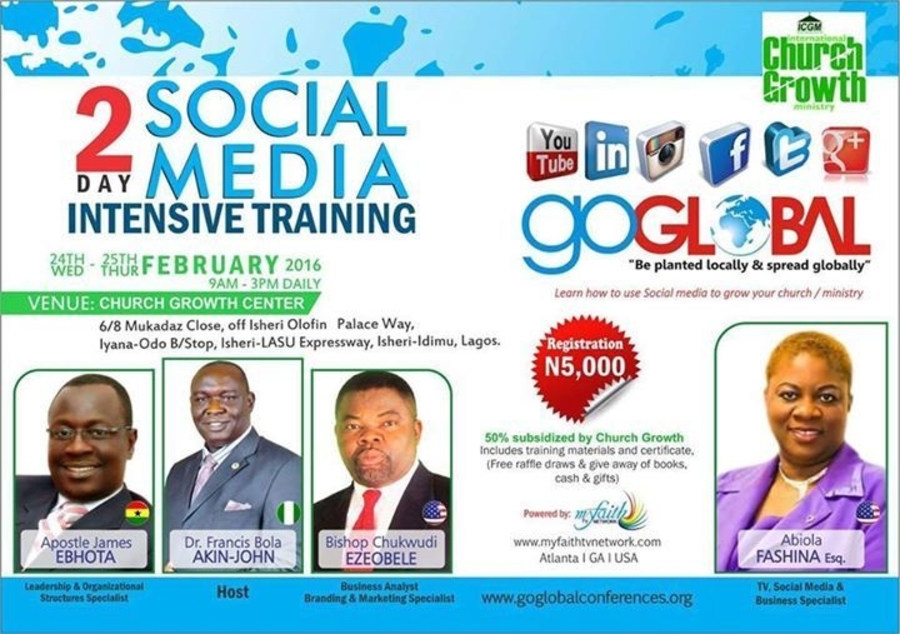 Employment seekers,Entreprenuers,Business people,Pastors and Ministry coordinators can attend to learn how to use social media to gain employment,promote their business or ministry and Go GLOBAL!