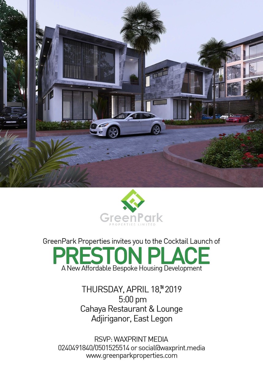 GreenPark Properties, an Accra-based Real Estate Development and Property Management Company, is set to host a cocktail reception to launch the groundbreaking of Preston Place, a mixed residential development nestled in Adjiringanor-East Legon into its network of affordable bespoke housing units.