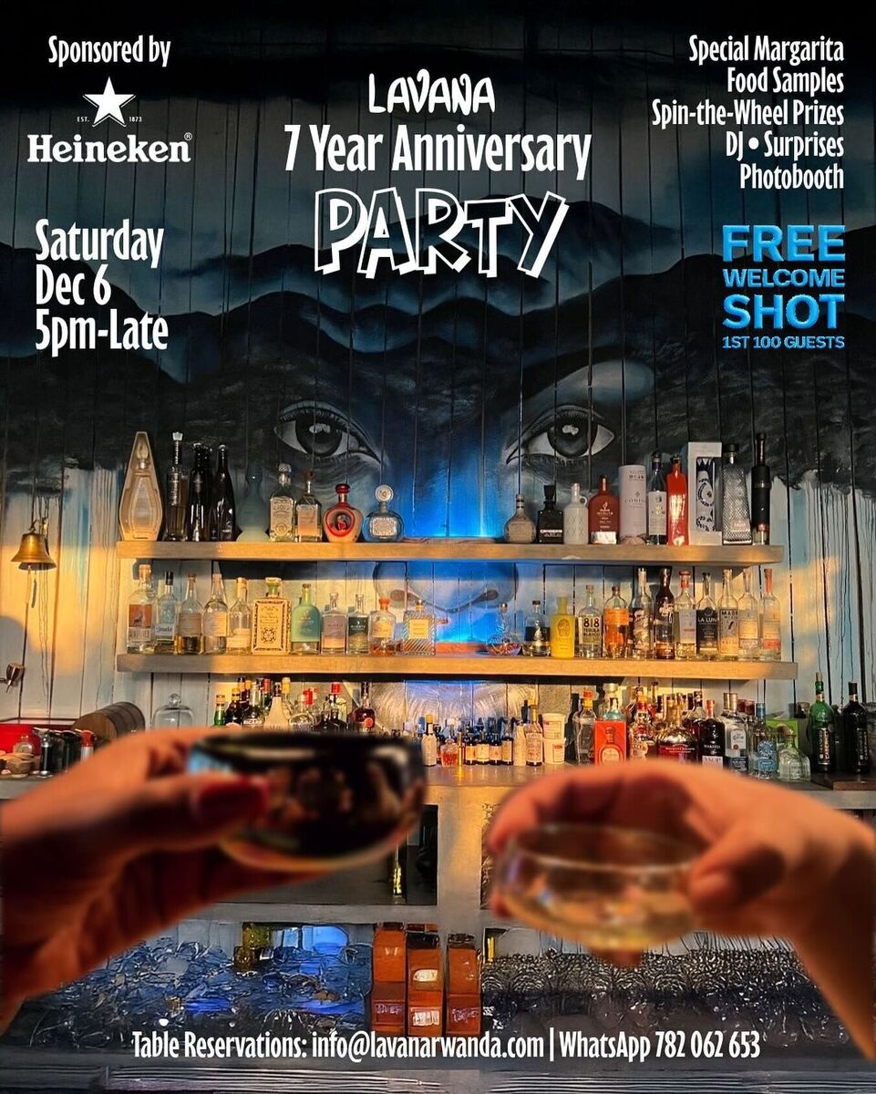 Join the celebration as Lavana marks seven incredible years of unforgettable nights and vibrant energy in Kigali! This special anniversary party promises a high-octane vibe with a limited-edition margarita, tasting portions of signature dishes, and a fun spin-the-wheel game with exciting prizes. Groove to the beats of top DJs spinning late into the night and anticipate a few delightful surprises that will make this evening truly memorable.