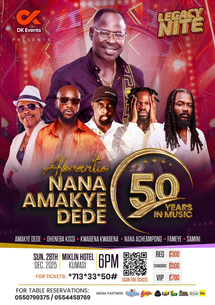 Join us for a historic night of highlife excellence as we celebrate Abrantie Nana Amakye Dede, the “Iron Boy” himself, marking 50 remarkable years in music!