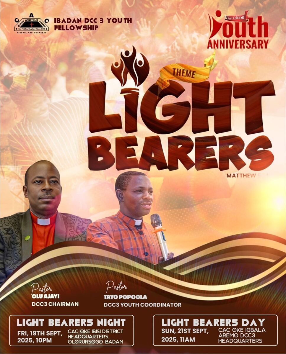 #LightBearers2025, #DCC3Youth, #ShineForChrist, #CACYouthAnniversary, #IbadanYouthFire, #WeAreTheLight