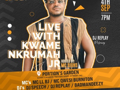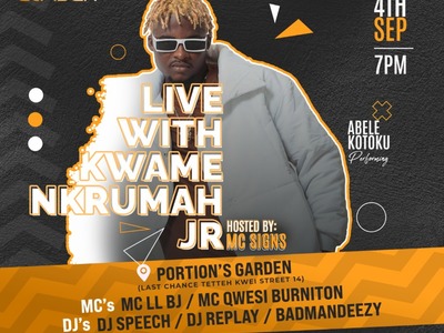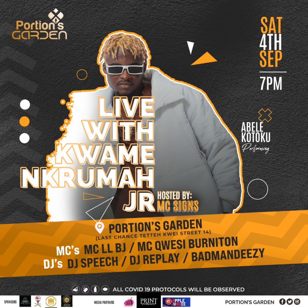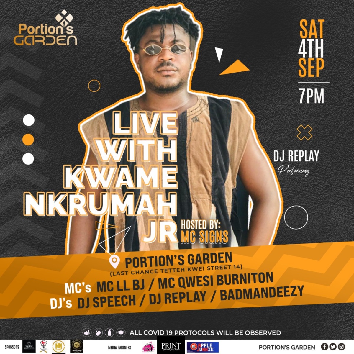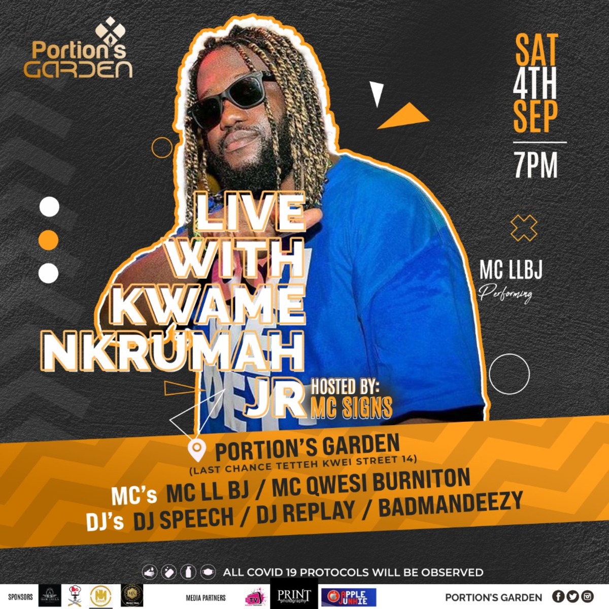 https://smarturl.it/dreams-n-heartbreaks Kwame Nkrumah Jr. Music, presents Live With Kwame Nkrumah Jr.; a concert with the sensational Kwame Nkrumah Jr. performing back to back hits from his newly released impressive music catalogue dubbed, Dreams n Heartbreaks- the EP. Concert features Gyakie, Tulenkey, K.K Fosu, Gambo, Rashid Metal and many other surprise artists. There will be an after party with the stars and the host MC Signs, inside the Portions Nightclub with DJ SPEECH, DJ REPLAY, DJ EMPATHY and BADMANDEEZY behind the turntable.
