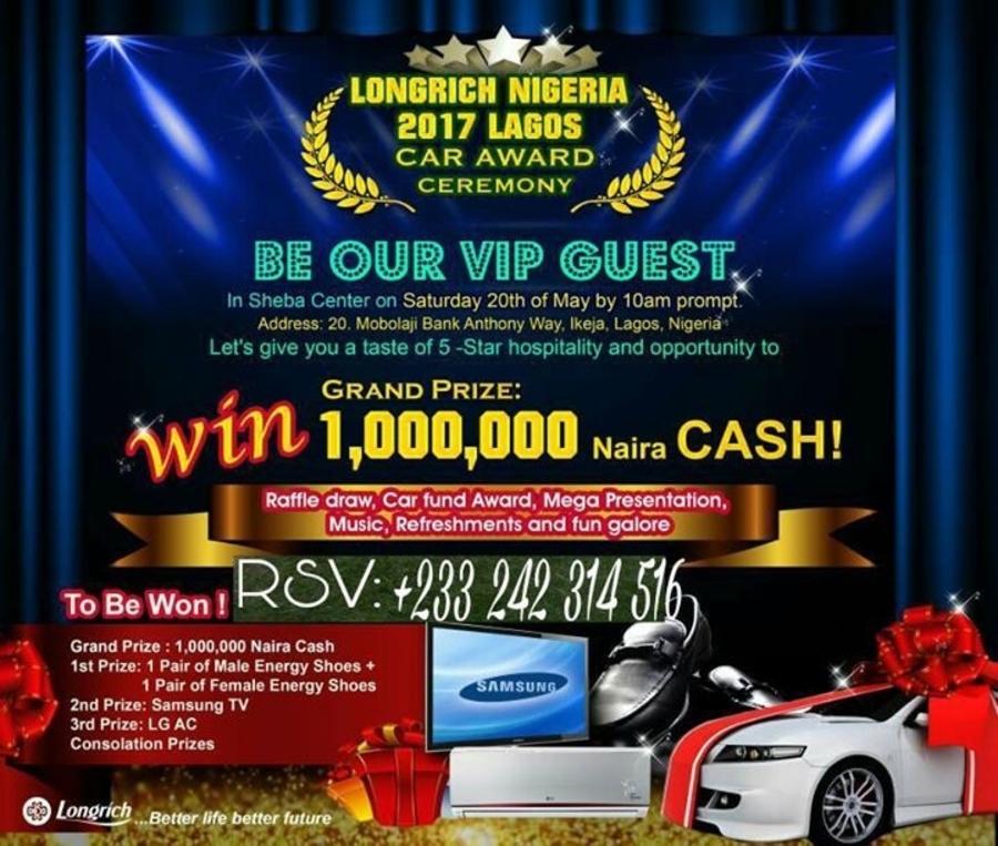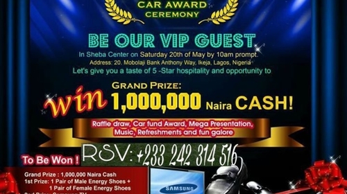 1st/Grand Prize of 1,000,000 Naira Cash.