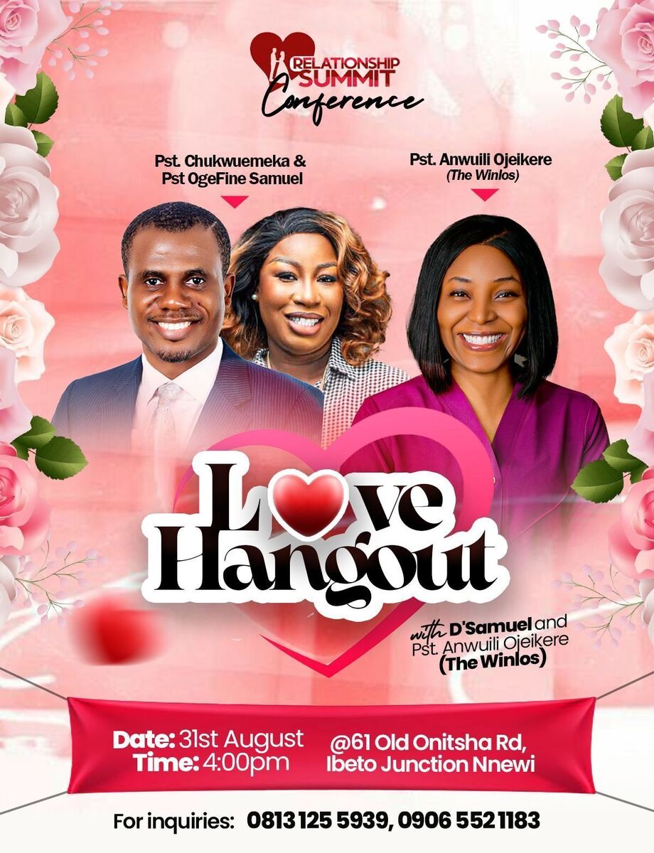 π Love Hangout is a special gathering designed to celebrate and explore relationships and marriage. This event offers an engaging platform for couples, singles, and relationship enthusiasts to learn, share, and grow together. Expect inspiring teachings, meaningful discussions, and fun-filled activities that strengthen bonds and foster understanding. Whether you're looking to improve your relationship, find love, or just have a memorable day, this event promises enlightenment and enjoyment in a warm, welcoming environment. Donβt miss the chance to be part of a transformative experience that could change your perspective on love and partnership! πβ¨