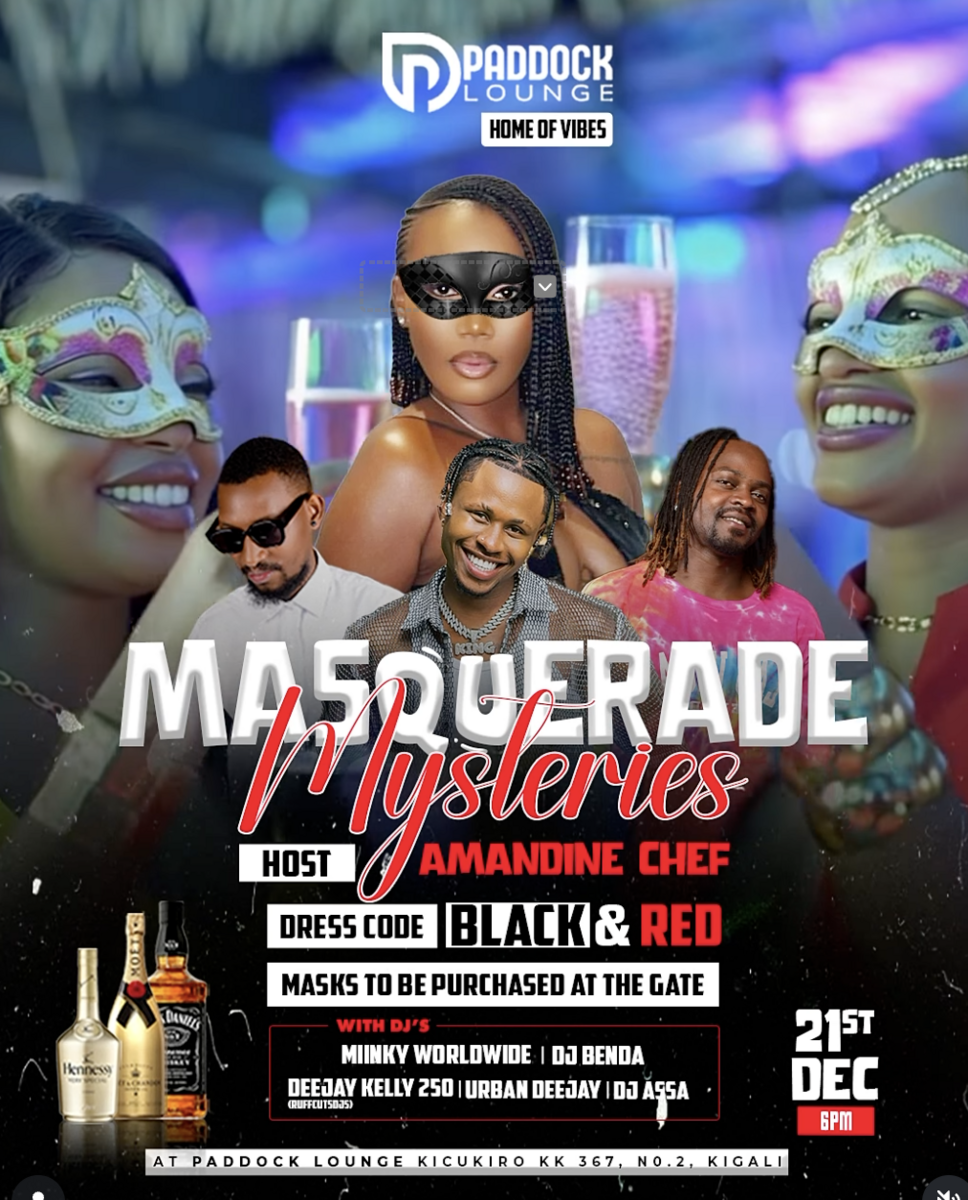 On the decks: Minky Worldwide, DJ Benda, Deejay Kelly 250, Urban Deejay, and DJ Afsa will keep the party alive. Expect premium vibes, great company, and champagne moments all night long. Come masked, come stylish, and come ready for an enigmatic experience.