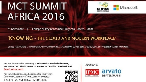 IAMCT welcomes you all to the second Africa edition of the Microsoft Certified Trainers Summit to be held in Ghana. Who can attend? MCTs, Microsoft Certified Professionals, IT Trainers, Students and all Individuals with passion for Microsoft operating systems and solutions