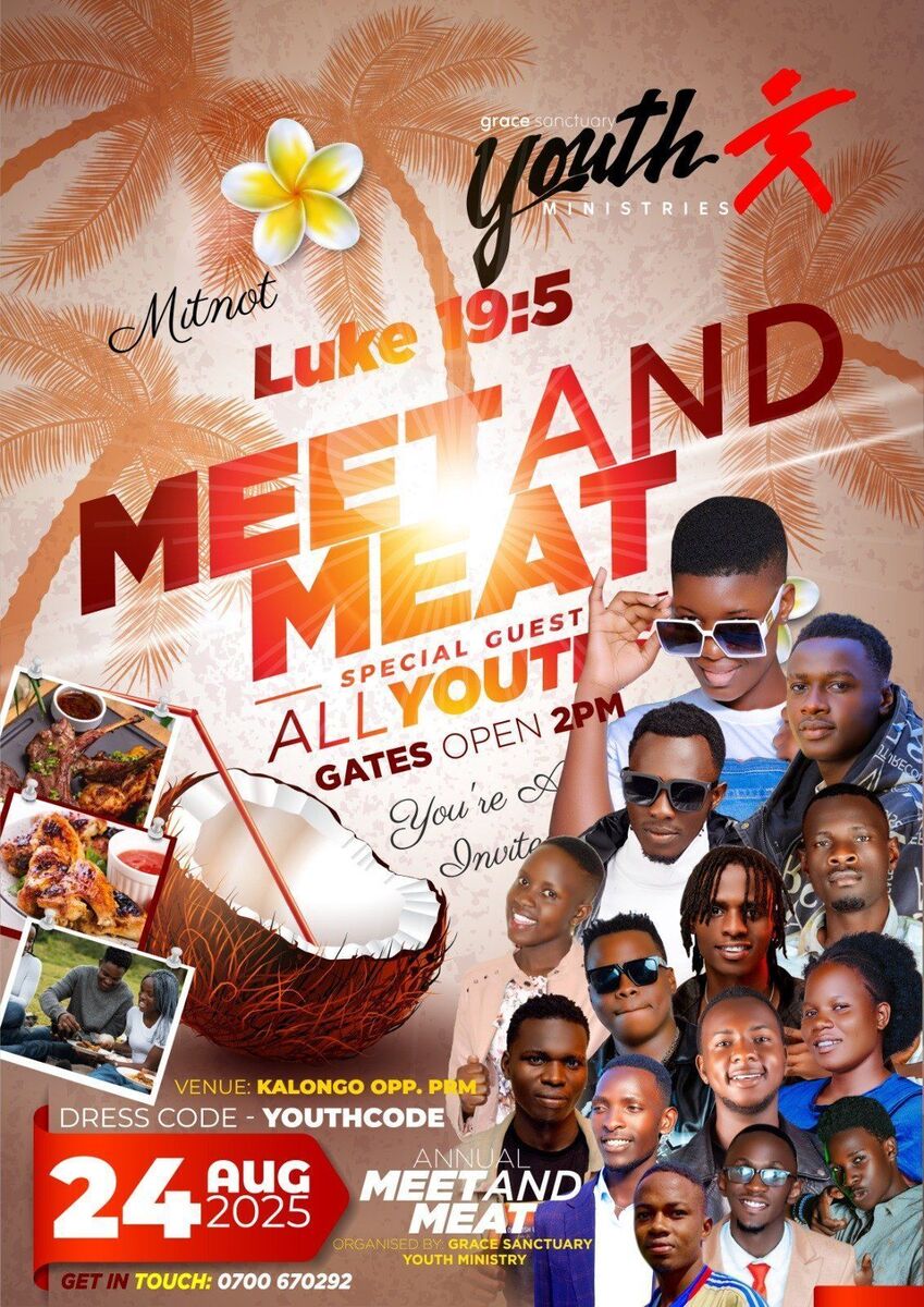 Join us for an exciting youth-focused event called MEET AND MEAT! This gathering is a vibrant invitation to young people worldwide, especially in Uganda, to experience love and goodness as spoken about by our LORD Jesus Christ. Be part of this inspiring occasion where faith, fellowship, and fun come together. Don't miss out on witnessing the blessings and joy that this event promises to deliver! 🎉✨