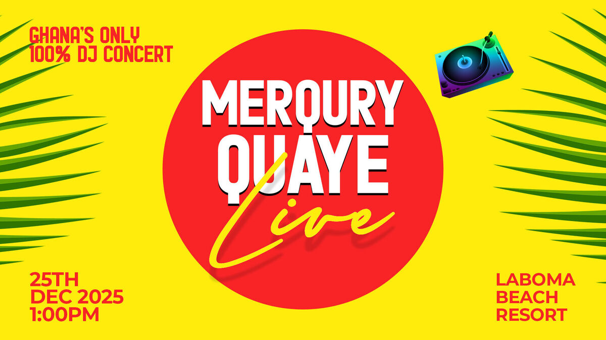 Get ready for an unparalleled musical experience with Merqury Quaye Live, Ghana's ONLY 100% DJ concert! This electrifying event brings together the best of African music, blending Afrobeat, highlife, reggae, and global rhythms, all expertly curated and mixed by none other than Merqury Quaye himself.