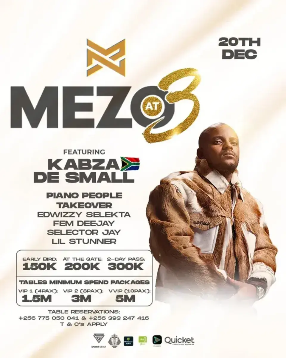 Join the celebration as Mezo Noir UG marks its 3rd anniversary with an unforgettable event this December. Experience a night of vibrant entertainment, featuring performances by renowned artist Kabza De Small, and soak in the festive atmosphere of this milestone celebration. Get ready for an extraordinary evening filled with music, joy, and cultural vibes!
