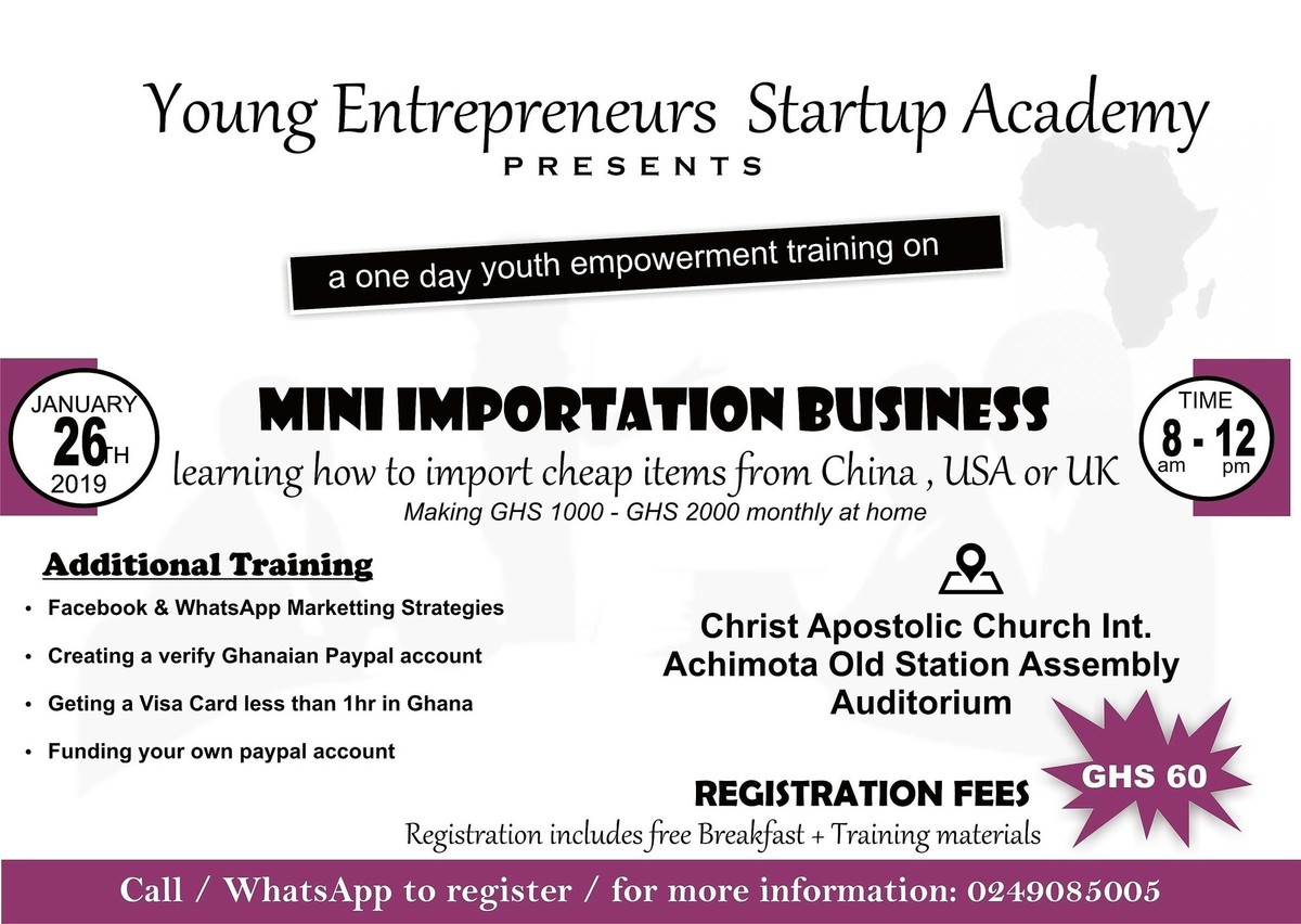 This training will provide you with the right knowledge and information to be able to earn GHS 1000 to GHS2000 monthly by importing cheap items from China, USA and UK.