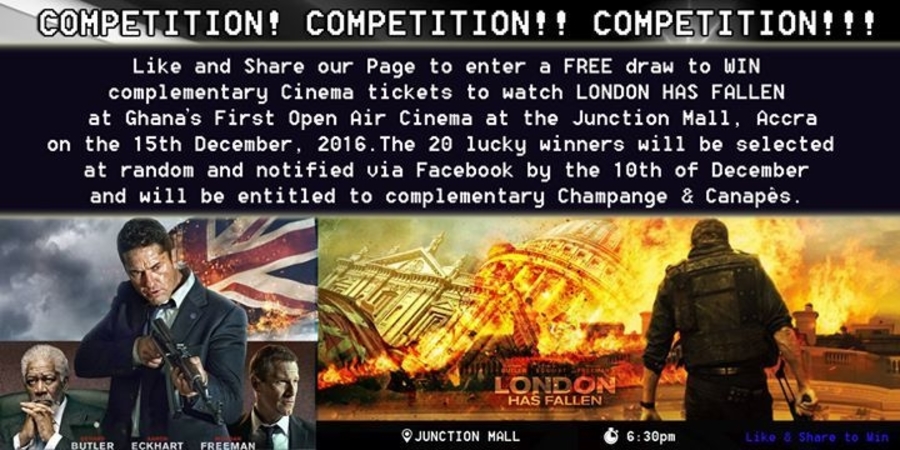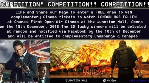 Movies Under The Stars launch, Ghana's first open ait Cinema opening on the 15 December at the Juction Mall at Nungua in the Greater Accra Region of Ghana. Like and share our competition flyer to win FREE tickets and come along for a night of entertainment
