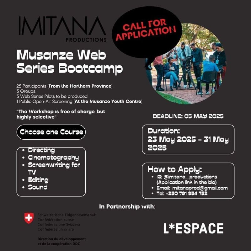 With 25 talented filmmakers participating, and divided into 5 creative groups, we will be producing 5 exciting web series pilots. This immersive experience will culminate in a public open-air screening at the Musanze Youth Centre, showcasing the incredible work produced during the bootcamp.