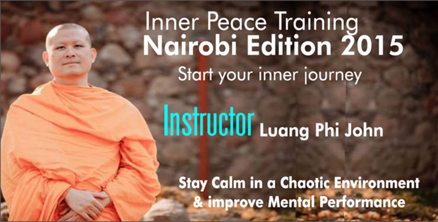 Change begins with you, and so is peace. A peaceful society begins with you. In this training, Luang Phi John a renowned meditation teacher from Thailand will be in Kenya from 21 Jan 2015. He will teach on acquiring inner peace, and guide meditation at Kenyatta University's BSSC room 152 on 22 Jan from 9am till midday and at the Shine Center - Africa Yoga Project on 23 Jan from 2pm till 4pm in Parklands.
