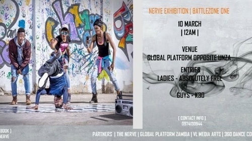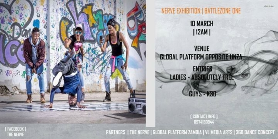 This March, The Nerve, 360 Dance Concept and Global Platform Zambia Presents To You Battlezone. Hip-hop Showcase and 1 on 1 Battles.