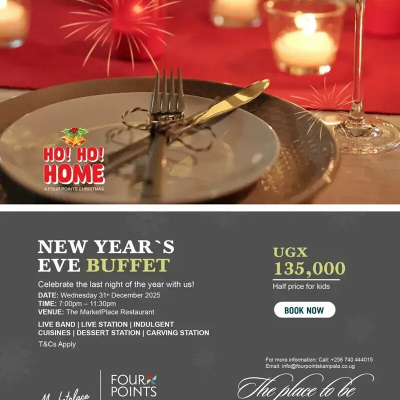 Celebrate the end of the year in style with an exquisite New Year's Eve Buffet at Four Points by Sheraton Kampala. Indulge in a delightful array of culinary masterpieces crafted to elevate your festive spirit. This is more than just a meal—it's a memorable experience to welcome the new year with flavors and festivity.