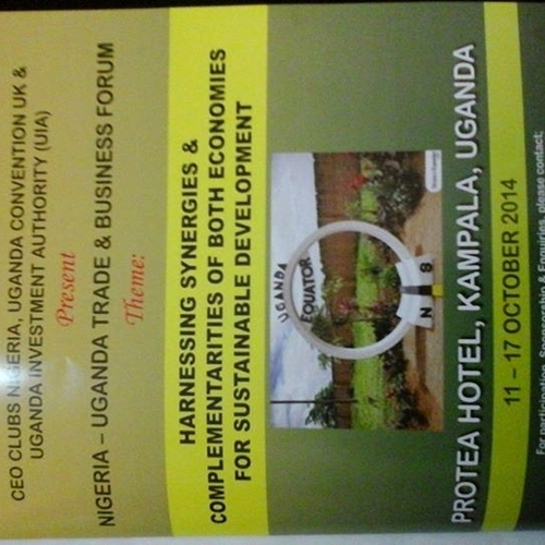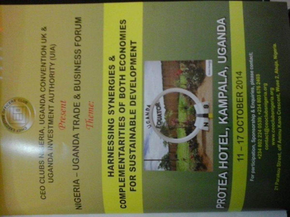 CEO Clubs Nigeria in partnership with Uganda UK Convention and the Uganda Investment Authority, invite participation of Nigerian business men and women, keen on extending or deepening their business relations in Uganda, for a week (October 11 - 17, 2014) exploratory and closing of partnership deals with businesses and institutions in Uganda. The thematic focus areas of the Nigeria - Uganda Trade & Business forum;