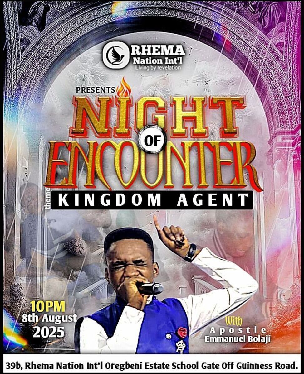 π₯ Night of Encounter β an electrifying spiritual gathering where believers come together to reignite their faith and renew their commitment to the Great Commission. Embrace a night filled with powerful worship, inspiring teachings, and divine encounters that will elevate your spiritual journey. Whether you're seeking renewal, breakthrough, or simply want to experience the presence of God, this event promises an unforgettable experience. Come prepared to be transformed and to carry the kingdom's fire back into your everyday life! π₯β¨