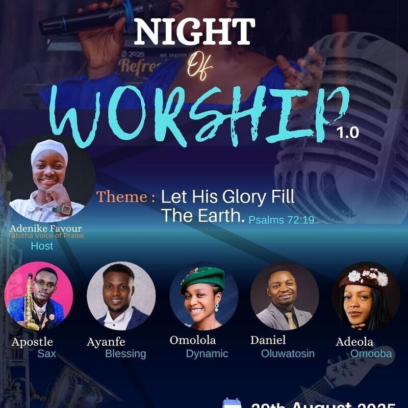 ๐ถ Night of Worship 1.0 is a powerful spiritual gathering designed to fill the earth with His glory, inspired by Psalms 72:19. Join us for an uplifting experience featuring inspiring worship sessions, heartfelt songs, and messages of faith and hope. The event promises an atmosphere of divine presence, reverence, and community. Come ready to be ministered to through anointed music and word, and be part of a movement to bring God's glory to every corner of the world. Don't miss this opportunity to connect, worship, and experience the fullness of His presence! ๐๐