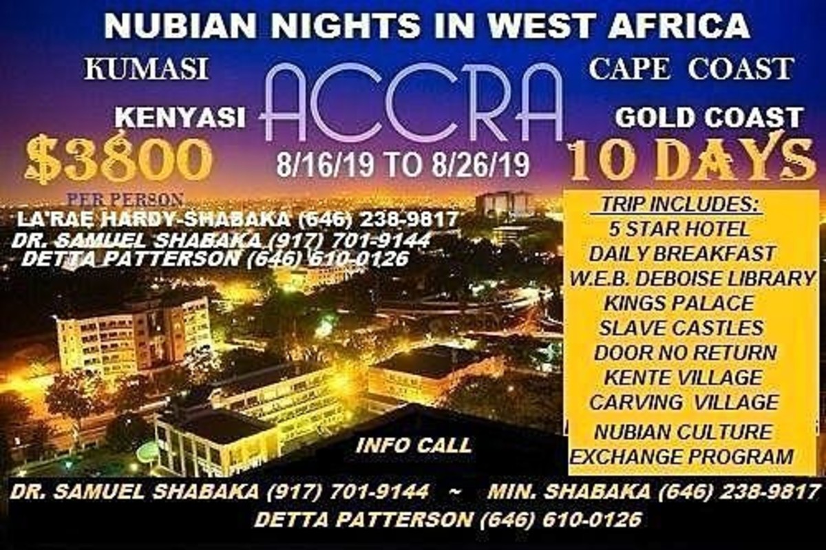 if you are interested in traveling with NUBIAN FOUNDATION SERVICES, INC. please contact La'Rae @ (646) 238-9817 or Detta @ (646) 610-0126 or Dr. Shabaka (917) 701-9144 and we will answer all your questions and send you a full travel itinerary. We are looking forward to this Journey with you.