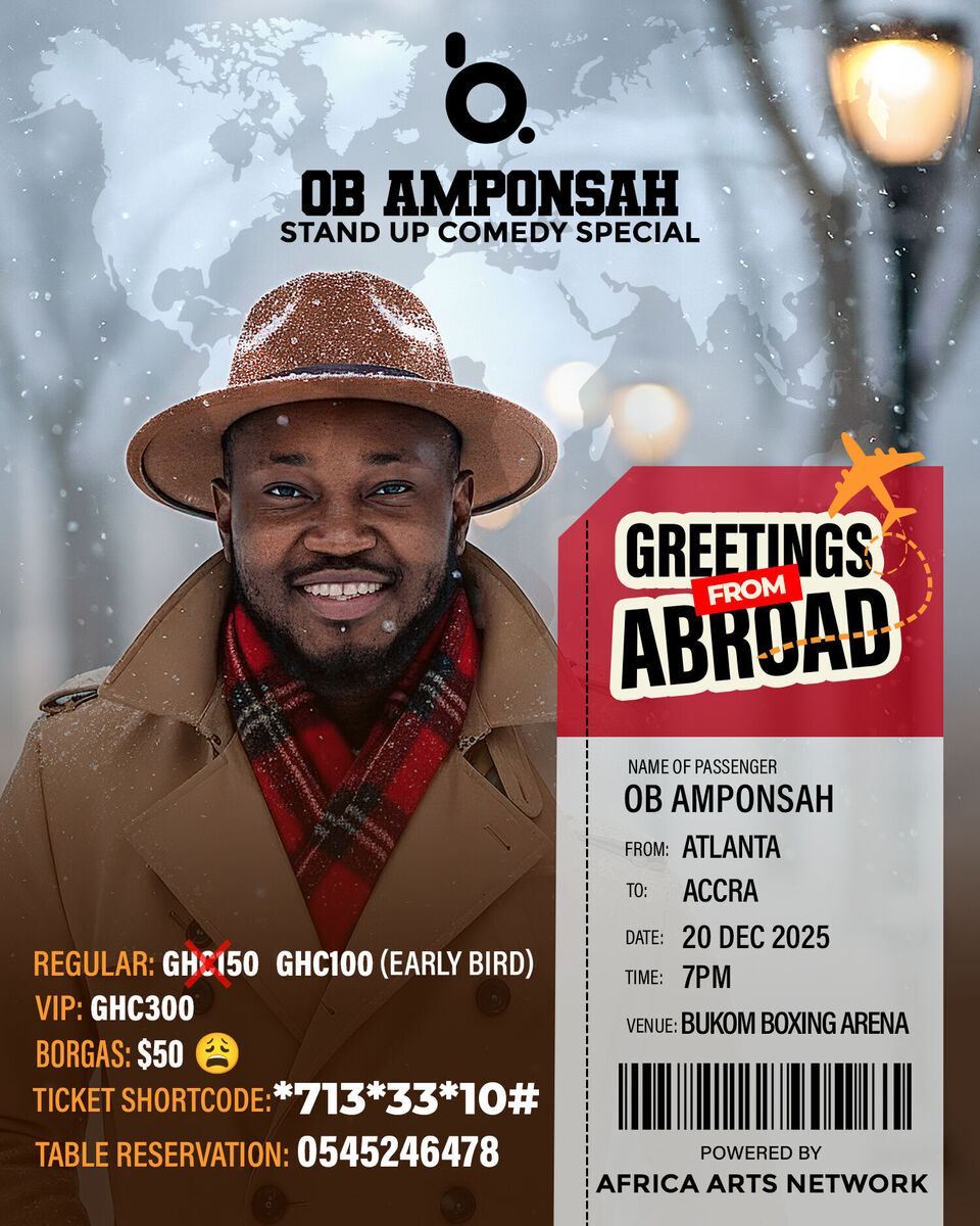 OB Amponsah: Greetings From Abroad is a hilarious stand-up comedy special that captures OB’s sharp wit and global perspective as he shares stories and observations from his travels and experiences abroad. Blending humor, social commentary, and cultural reflection, the show delivers laughter with insight; a true testament to OB’s mastery of intelligent comedy rooted in Ghanaian realities with a global twist.