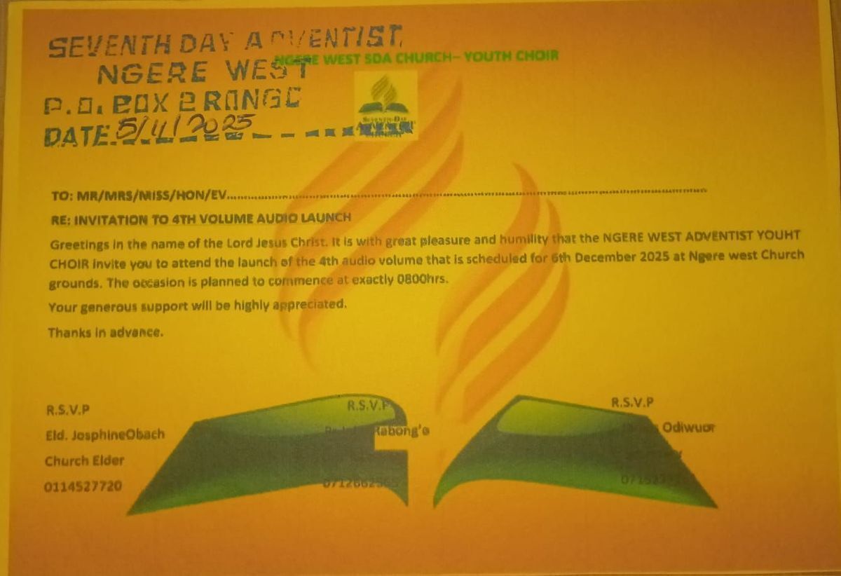 πΆ Join us for a soulful celebration at the Official 4th Album Launch and Sabbath! This event promises an evening of inspiring worship, heartfelt music, and community fellowship. Experience the spiritual uplift as talented artists present powerful performances in a welcoming atmosphere. Whether you're a music lover, a faith seeker, or simply looking for an uplifting experience, this event is your perfect opportunity to connect and rejoice. Come with an open heart, invite friends and family, and immerse yourself in a night of divine praise and musical excellence! β¨π