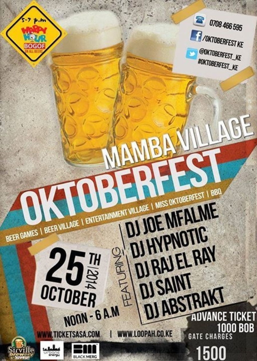 Oktober fest 2014 is a festival to be held in Nairobi on the 25th October 2014.The event is inspired by the annual Oktoberfest celebrations held all over the world and seeks to bring together a multicultural audience to connect and interact as they enjoy different attractions at the festival.