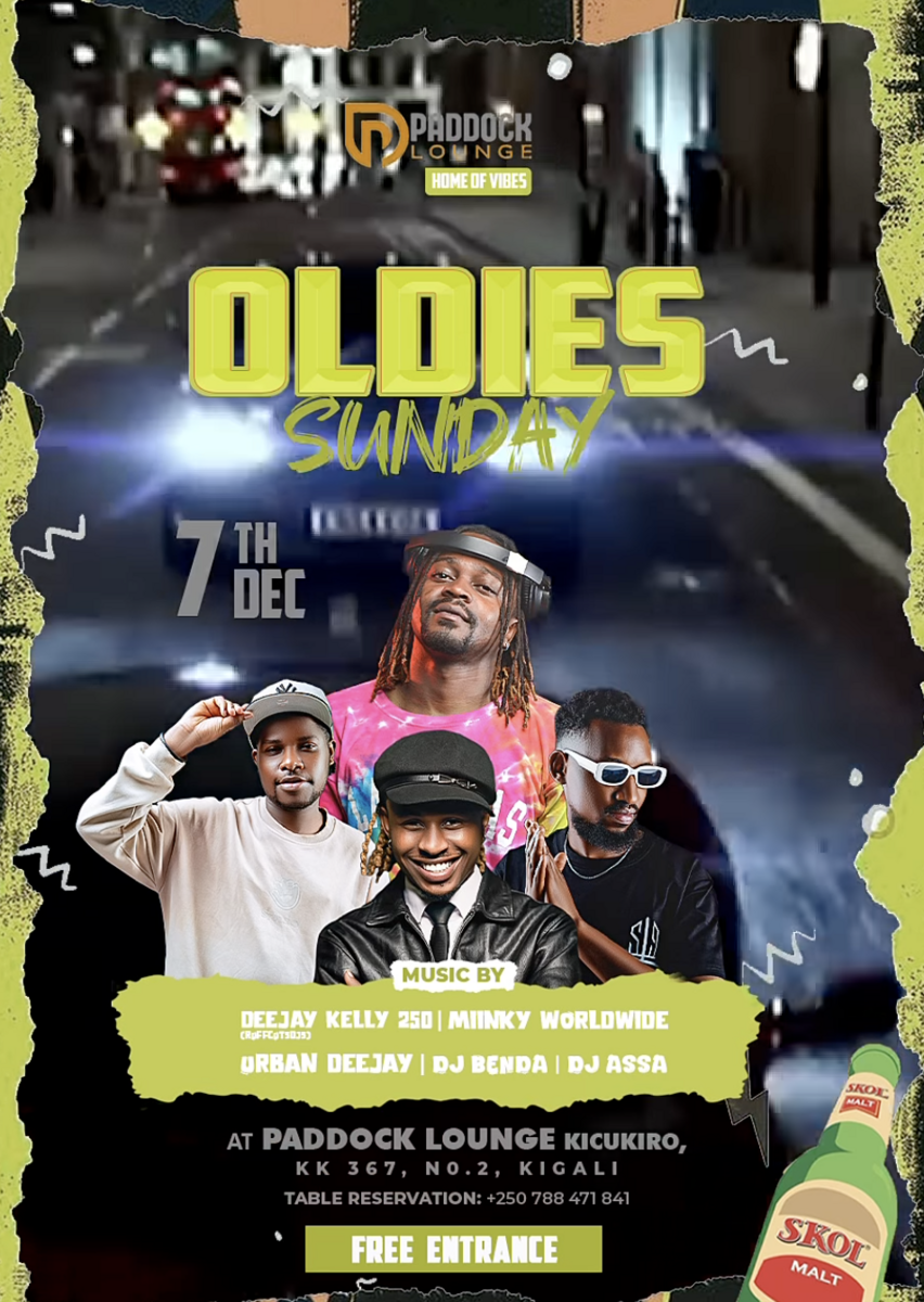 Gather your friends, bring your best throwback style, and soak in the atmosphere at Kigali’s home of vibes. Don’t miss the chance to relive the good old days — Oldies Sunday at Paddock Lounge is where memories come alive!