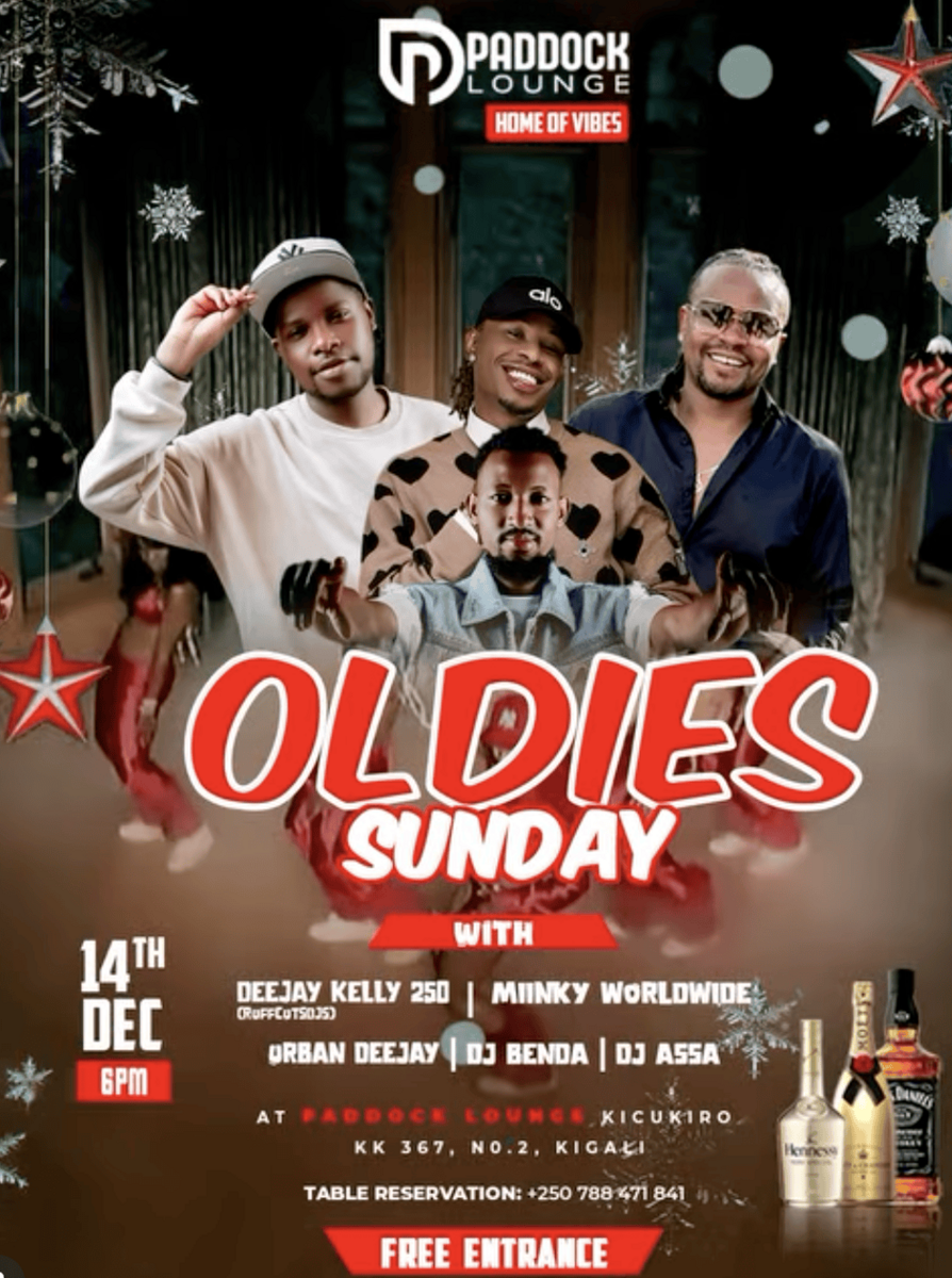 Get ready to groove all night as Deejay Kelly 250, Minky Worldwide, Urban Deejay, DJ Benda, and DJ Assa set the decks on fire with back-to-back hits. Gather your friends, bring your best throwback style, and soak in the electric atmosphere at Kigali’s home of vibes.