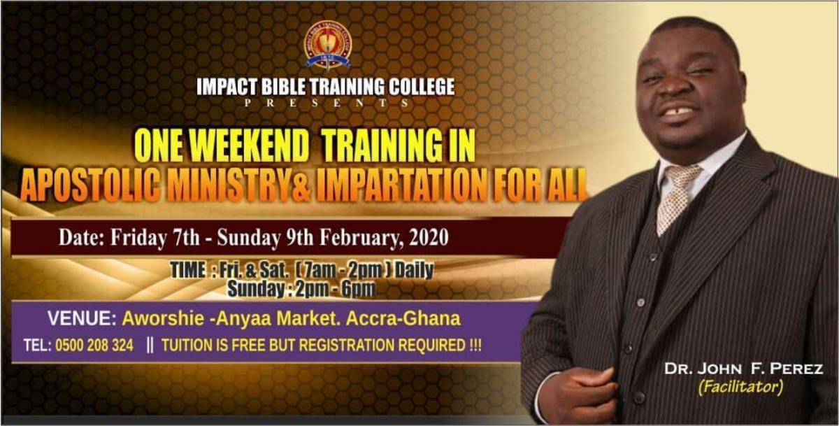 ONE WEEKEND TRAINING IN APOSTOLIC MINISTRY & IMPARTATION FOR ALL