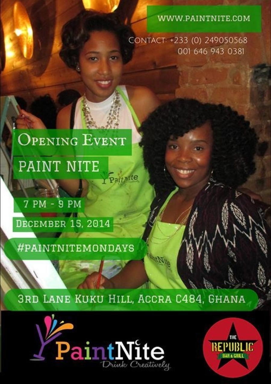 First ever Paint Nite event in Ghana. Tickets are on sale @ 20% off. Use coupon code "Sani20" when checking out. Paying with Cash? No problem. Message us on FB or contact us @ 0242502844 or 0249050568