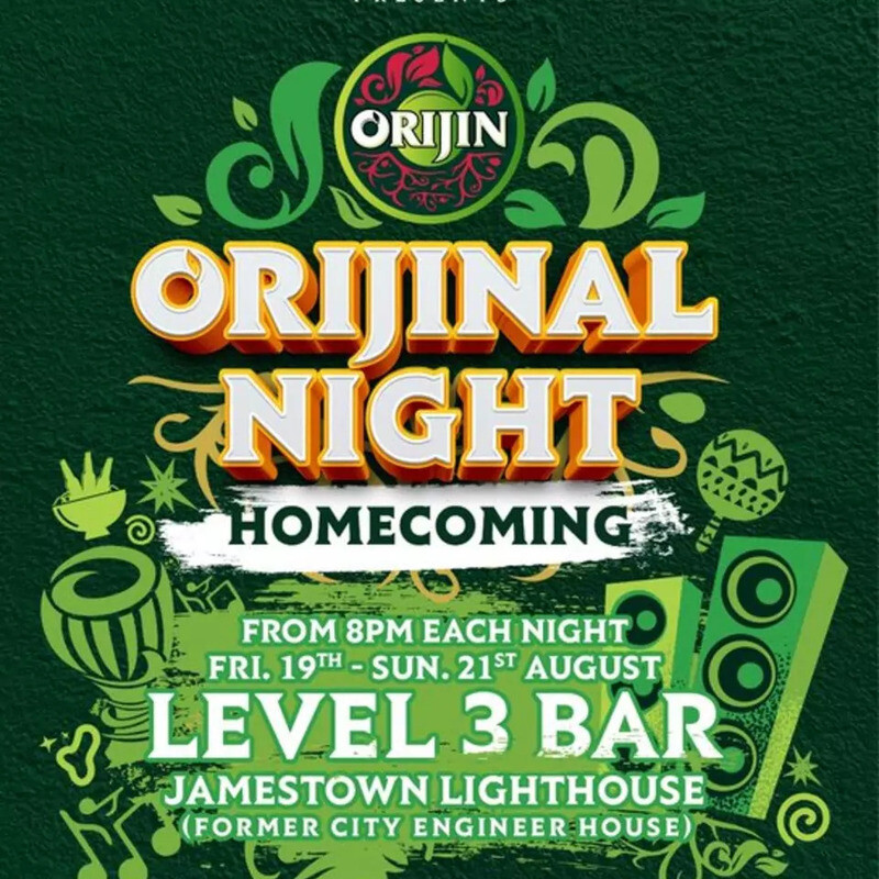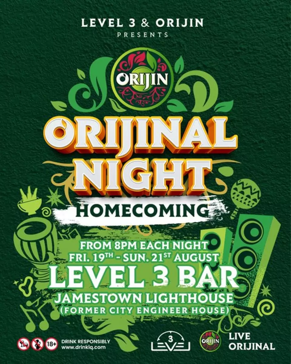 Where our Orijinals dey?? We dey Level 3 Bar inside Jamestown from 8pm sharp this whole weekend!! Gather all your boys boys and girls girls make you come experience true Orijinal vibes.