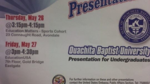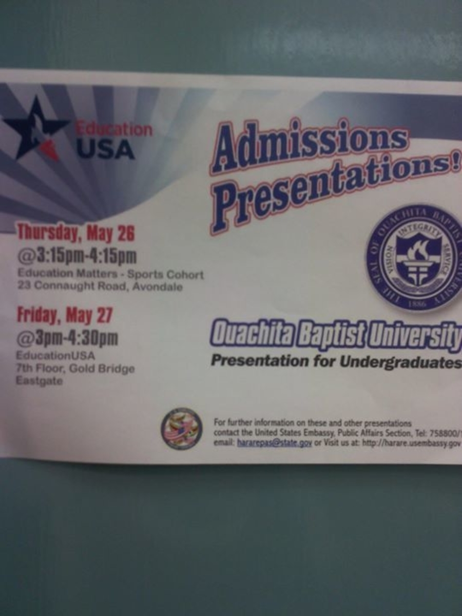 An admission officer from Ouachita Baptist University will be presenting on the admission process and scholarships available at the school